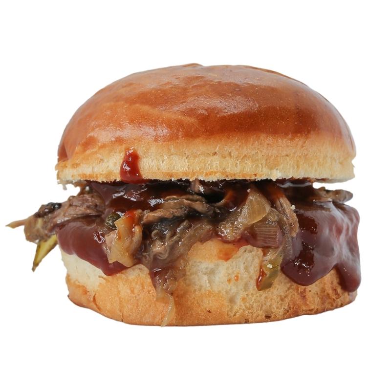 Tiftiklenmiş döş eti,cheddar peyniri, bbq sos,karamelize soğan,sote mantar,turşu